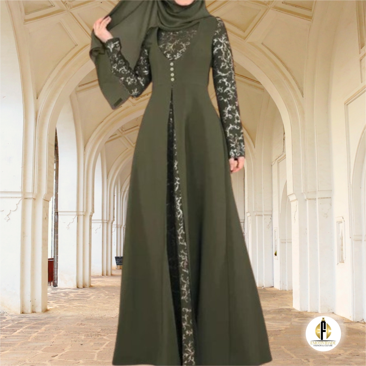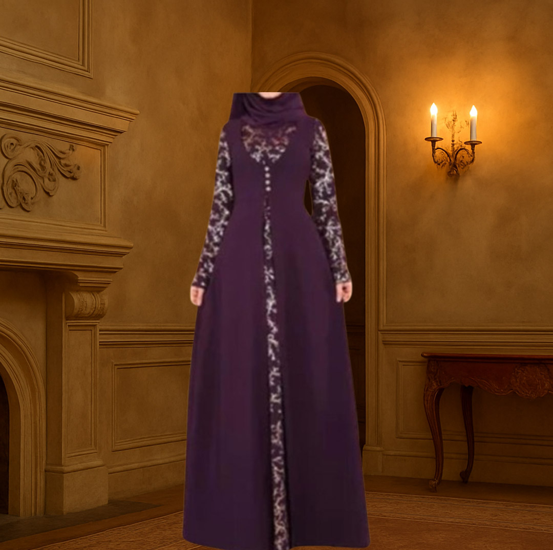 Luxurious doll dress in black, purple and dark green, long sleeves with details, for very charming women.